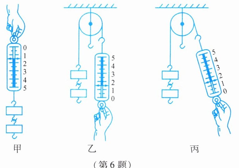6. 图示为某同学用一个弹簧测力计(量程为5牛)做“探究定滑轮的特点”实验的几个步骤。