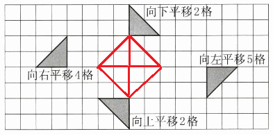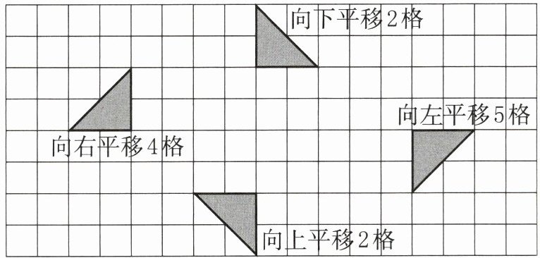 4. 按要求画出三角形平移后的图形。拼成的图形是什么图形?