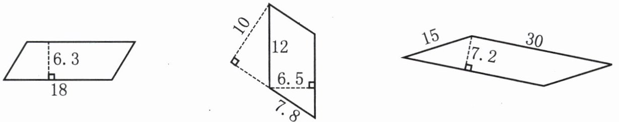 2. 计算下面各平行四边形的面积。(单位:cm)