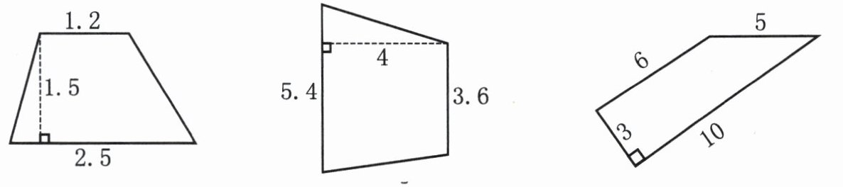 1. 如右图,两个完全相同的梯形能拼成一个底是5cm、高是4cm的平行四边形。原梯形的面积是