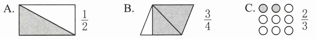 (1) 用分数表示下列各图中的阴影部分,正确的是(