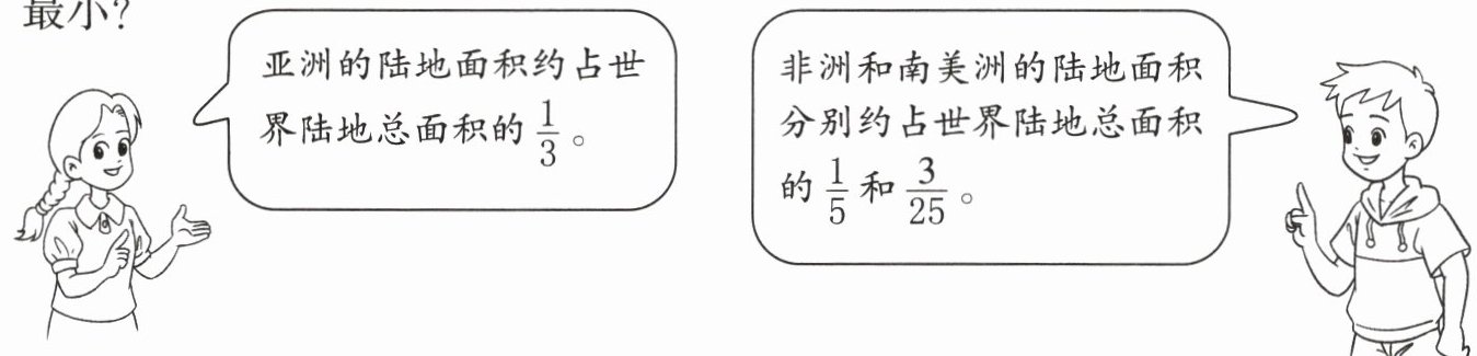 非洲和南美洲的陆地面积分别约占世界陆地总面积的$\frac{1}{5}和\frac{3}{25}$。