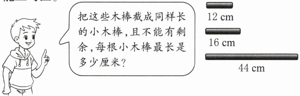 把这些木棒截成同样长的小木棒,且不能有剩余,每根小木棒最长是多少厘米?