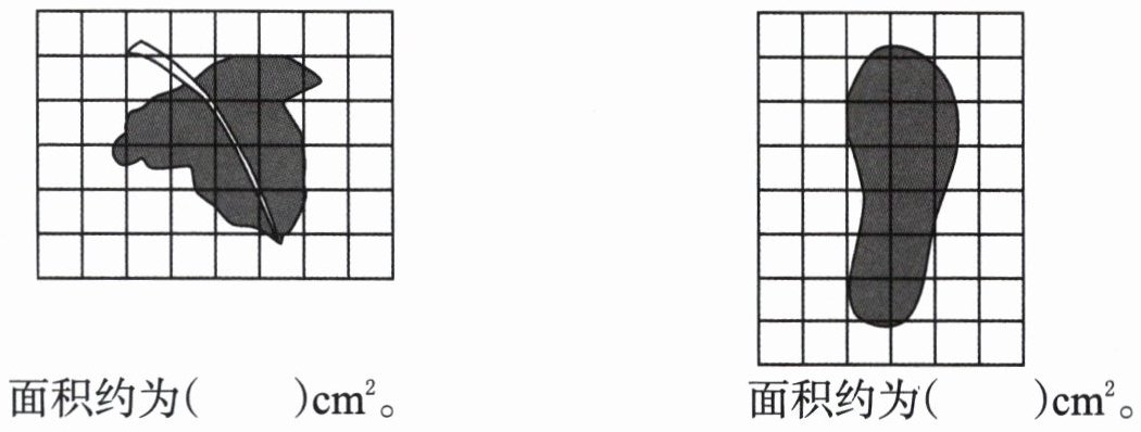 1. 估计下面各图形的面积。(每个小方格的面积表示$1cm^{2}$)