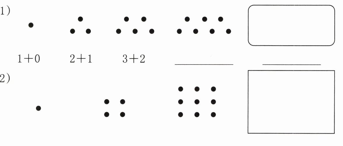 (1)中第一个图形有$1$个点,算式是$1 + 0$;