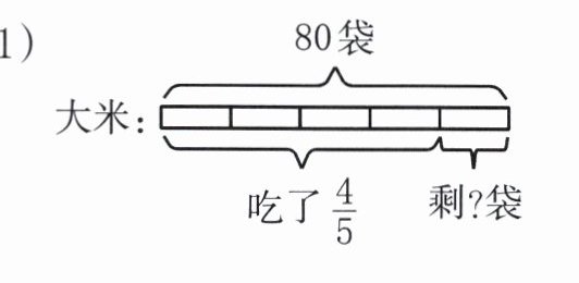 (1)解析:本题考查分数的混合运算。从图中可知,总共有$80$袋大米,吃了$\frac{4}{5}$,需要先算出吃了的袋数,再用总袋数减去吃了的袋数,得到剩下的袋数。