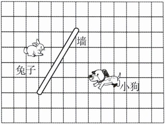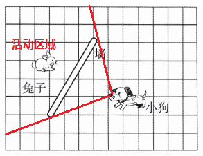 2. 如下图,一只小狗在一堵墙的前面,一只兔子在这堵墙的后面活动,它怕被小狗看到,请画出兔子可以活动的区域。
