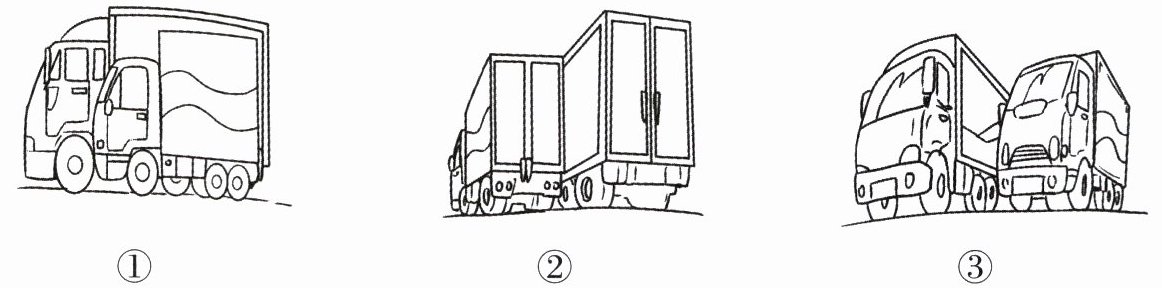 3. 两辆货车从亮亮旁边驶过,他连续拍了三张照片。请把这三张照片按照拍摄时间的先后顺序排列: