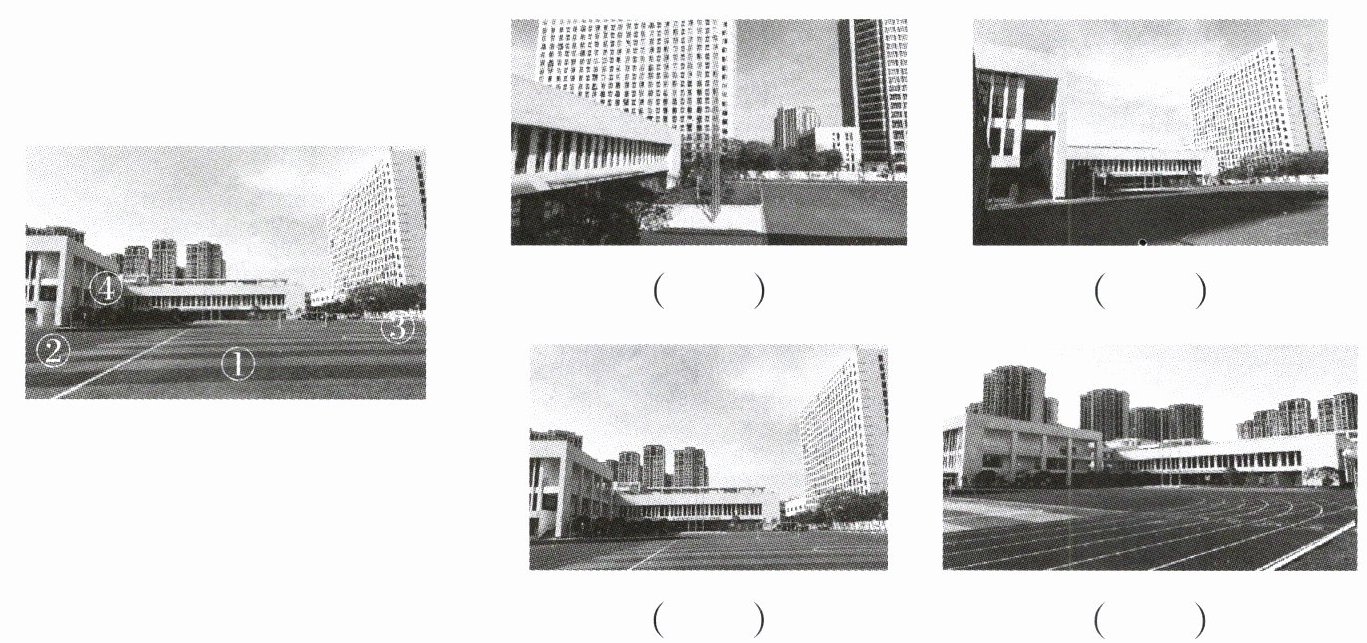 7. 淘气在校园的操场上拍了几张照片,下面各照片分别是在什么位置拍摄的?(填序号)