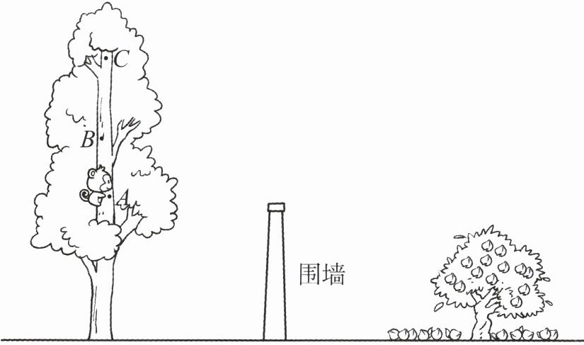 (2) 小猴爬到B处后,能看到树上的桃子吗?能看到地上的桃子吗?