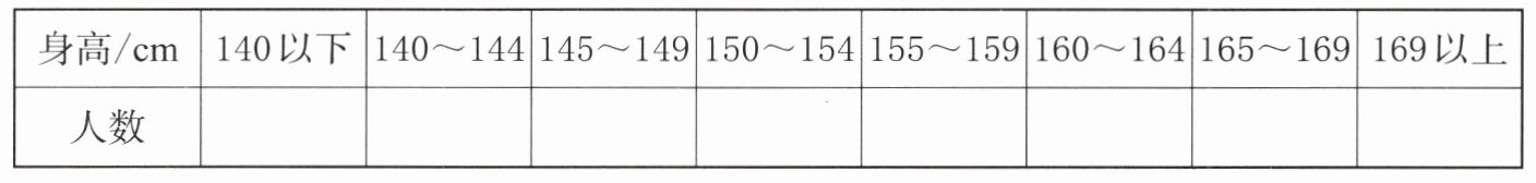 (1) 请将身高按每5cm一段整理数据,并完成表格。