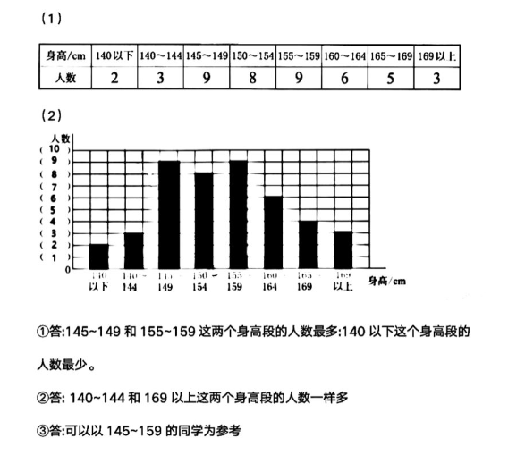 ①哪个身高段的人数最多?哪个身高段的人数最少?