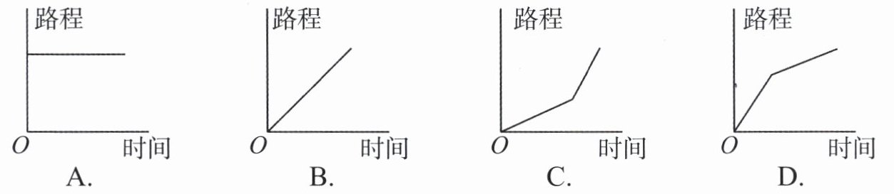 2. 奇思和妙想一起去上学。奇思觉得要迟到了,就跑步上学,跑累了,便走着去学校;妙想开始走路,后来跑步,直到校门口。下列图象中,( )描述了奇思的行为,( )描述了妙想的行为。