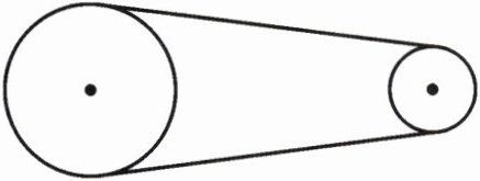 两个皮带轮,它们在皮带连接下转动,在相同时间内,小轮转过的总长度和大轮转过的总长度是相等的。