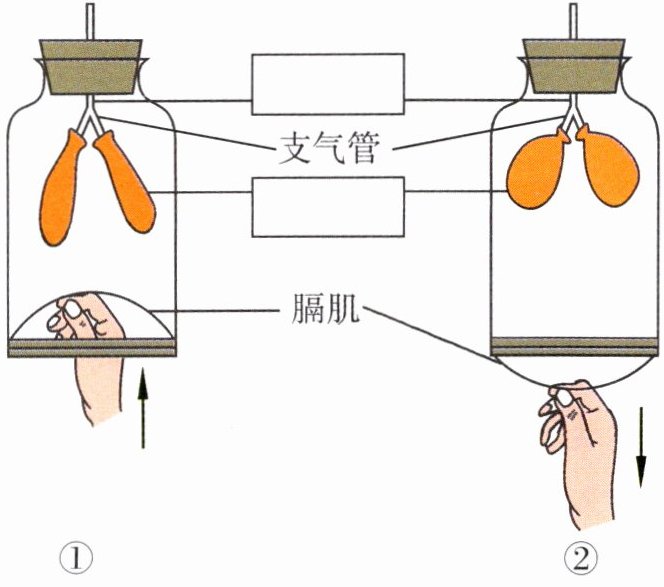 3. 第2题图①中把“膈肌”往上按时(“胸腔”收缩),气球会缩小,模拟的是(