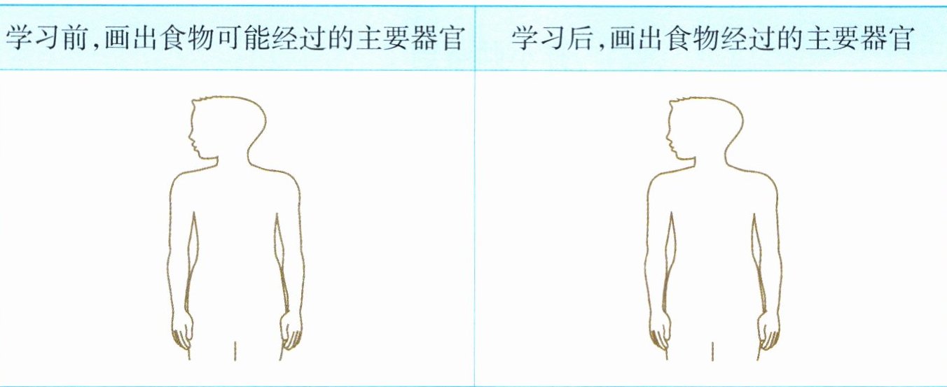 学习前,食物可能经过的主要器官(示意即可,不要求完全准确比例和位置):