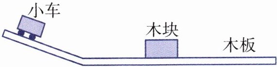 3. 从不同坡度的斜面上的同一位置释放小车,撞击木块(如下图)。