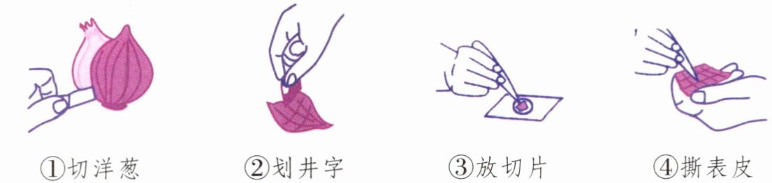 8. 下图是制作洋葱表皮切片标本的四个步骤,正确的顺序是(