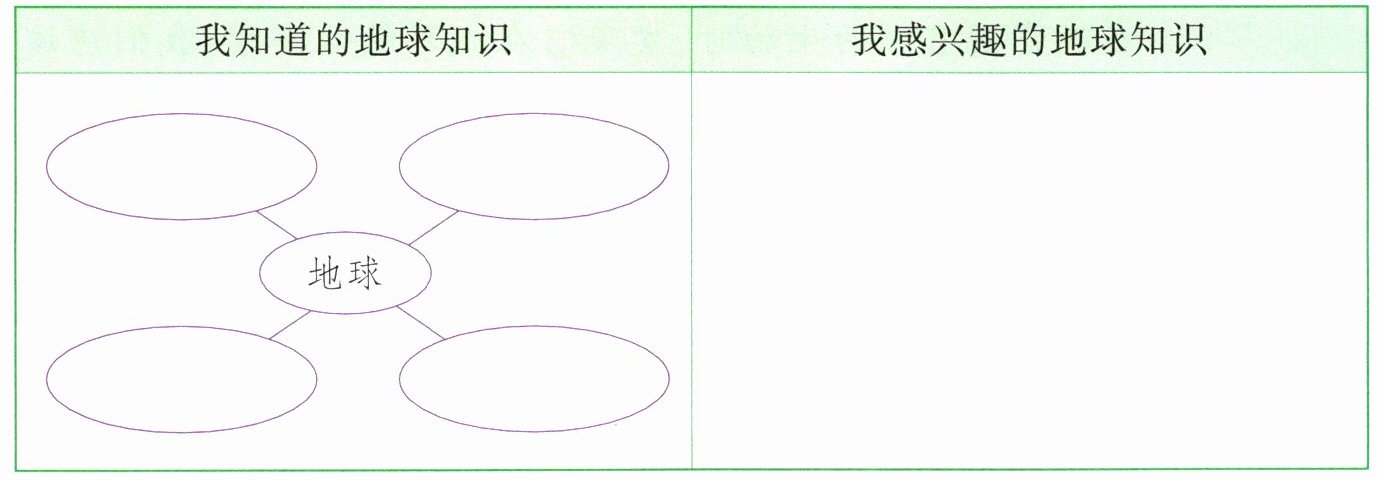 【解析】:本题主要考查对地球相关知识的掌握和兴趣点,涉及到地球的基本特征、结构、运动等方面的知识点。解答时需回忆所学地球知识,分别从不同角度填写已知和感兴趣的地球知识。