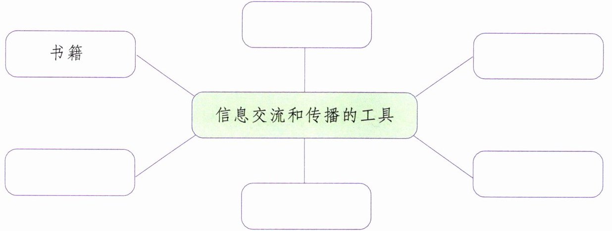 【解析】:本题考查了信息的交流和传播方式的知识点。根据六年级学生的知识水平与实际情况,需要列举出常见的信息交流和传播工具。一般包括书籍、报纸、电话、电视、广播、互联网等。
