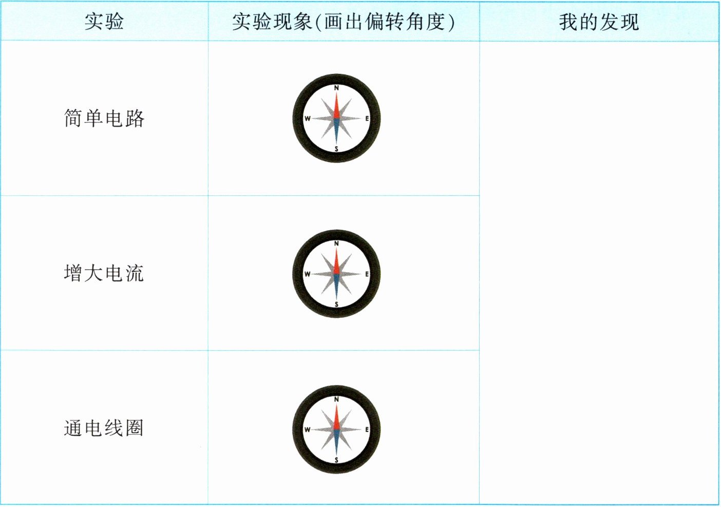 我的发现:通电导体周围存在磁场,电流越大,磁场越强;通电线圈的磁场比直导线的磁场强。