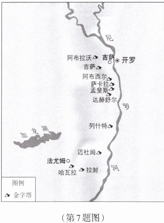 7. 读《埃及金字塔分布图》,从中可以直接获取的信息是(
