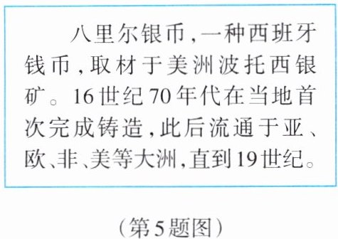 5. 右图是关于八里尔银币的信息。该银币的流通可以说明 (