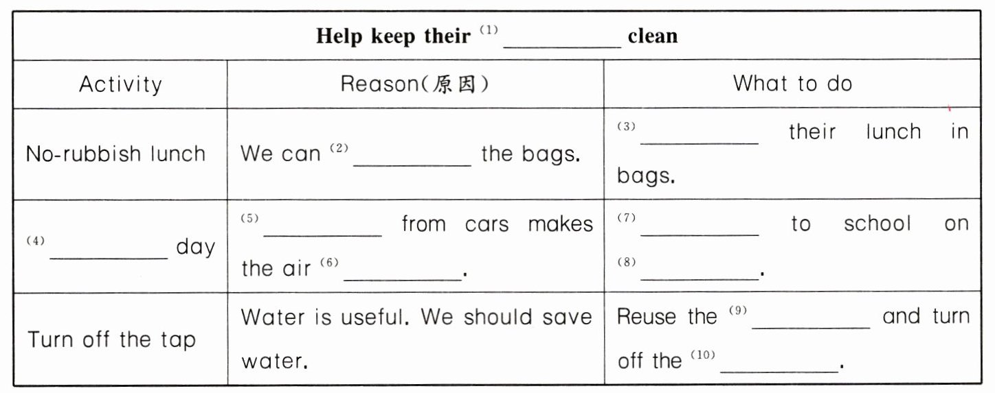 clean. They join the environment clubs. In the clubs,students work together to make their schools clean.Here are some things the students often do.