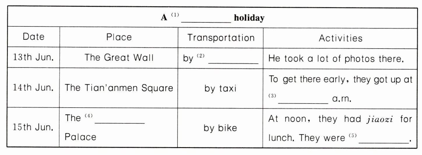 E) 听录音,根据所听短文内容,完成表格。(听三遍)