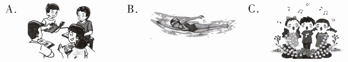 ) 3. Which club does David often go to in the afternoon?听第一段对话,回答第 4 至 6 小题。