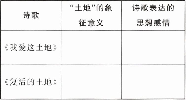 1. 20世纪30年代,艾青诗歌中的主要意象之一是“土地”。比较阅读下面两首诗歌(节选),填写表格。