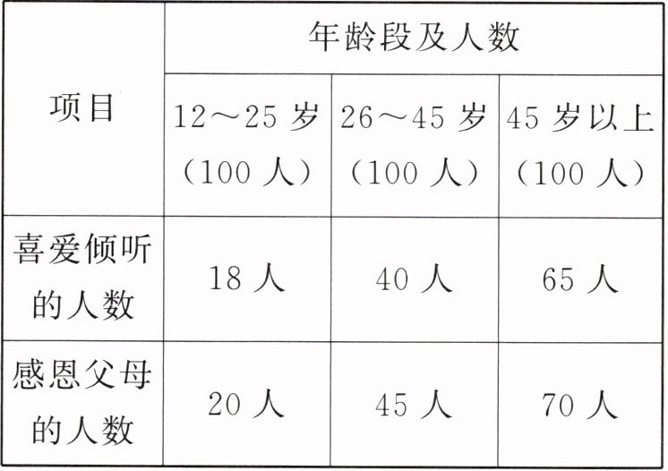 (1)(示例)喜爱倾听的人数和感恩父母的人数随着年龄的增长而增加。
