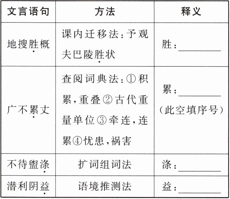 为了更好地读懂文本,同学们就文言文学习的方法展开了讨论,请你结合以上文本,将下表补充完整。