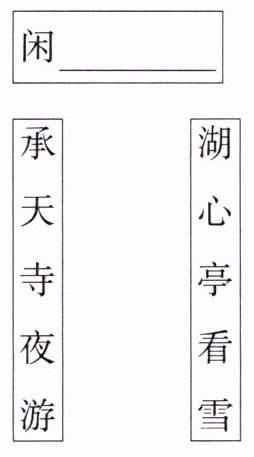 (2) 【活动二:补写对联】梁衡在《秋月冬雪两轴画》中说,《记承天寺夜游》和《湖心亭看雪》是我国古典文学宝库中的两轴精品。如果以“承天寺夜游”和“湖心亭看雪”为上下联,请再从《湖心亭看雪》中选取一个字,两个字合起来作为这副对联的横批,并阐释一下理由。