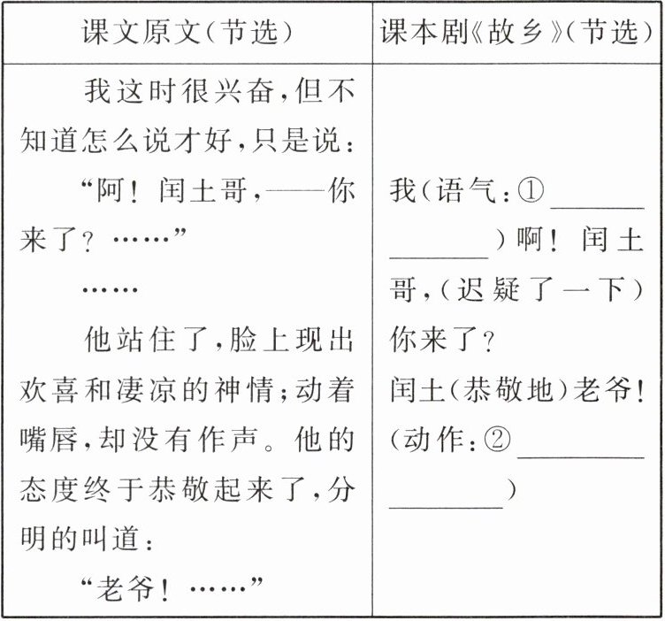 6. 学习了《故乡》一课后,某校九年级(1)班拟开展课本剧表演活动,请你参与并完成以下任务。