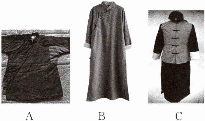 (3)(示例)A 短式上衣是劳动人民的服装,能够体现出闰土的身份特点,与小说《故乡》中描绘的衣着相似,服装上面的补丁能够体现出中年闰土此时家境的艰难。(长衫代表一种身份,与贫苦劳动人民的短衫相对;马褂一般套在长袍之外,不符合闰土的身份。)(意思对即可)