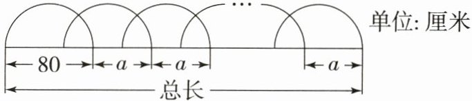 18. 如图,某花园护栏是用直径为$80$厘米的半圆形条钢组制而成的,且每增加一个半圆形条钢,护栏长度就增加$a$厘米(相邻两个条钢之间都有交叉,$a$为正整数).设半圆形条钢的总个数为$x$($x$为正整数).