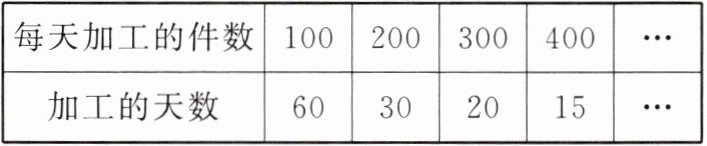 (2)加工的天数随着每天加工的件数的变大而变小,而且加工的天数与每天加工的件数的乘积一定,总是6 000.