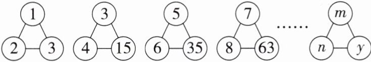14. 如图,下列各图形中的三个数之间均具有相同的规律,依此规律,用含有$m$,$n的代数式表示y$,即$y= $