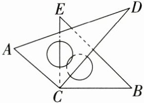 22. (8 分)如图, 将两块直角三角尺的直角顶点 $C$ 叠放在一起.