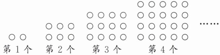 5. 如图是由若干个大小相同的“○”组成的一组有规律的图案,其中第1个图案用了2个“○”,第2个图案用了6个“○”,第3个图案用了12个“○”,第4个图案用了20个……“○”,,依照此规律,第$n$个图案中“○”的个数为