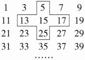10. 将连续的奇数 1,3,5,7,9,…排成如图所示的数表,平移十字方框,方框内的 5 个数字之和可能是(