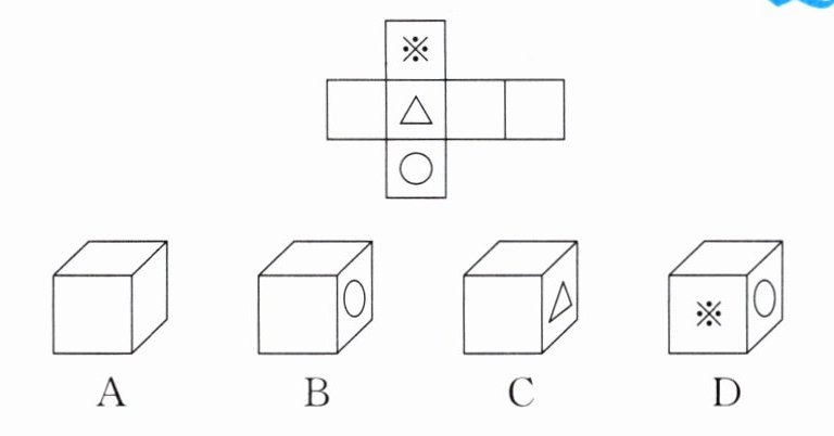 解析:选 B. 由题图可知,“※”和“○”相对,“△”与一个白面相对,剩余的两个白面相对,“△”与“○”相邻,只有 B 符合题意.