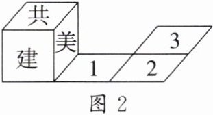 5. 如图 1 是一个小正方体的展开图,小正方体从如图 2 所示的位置依次翻到第 1 格、第 2 格、第 3 格,这时小正方体朝上一面的字是(