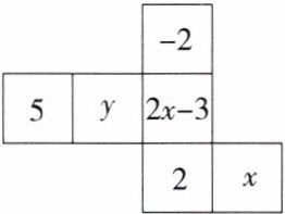 6. 如图是一个正方体的展开图,已知正方体相对的面上的数字或代数式互为相反数,则 $ 3x + 2y $ 的值为