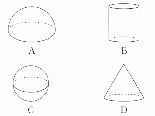 2. 如图,将半圆绕轴旋转一周,得到的立体图形是(