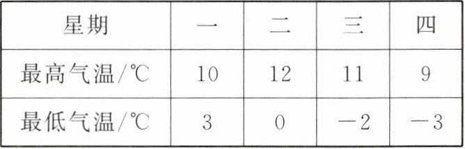 4. 某地一星期前四天每天的最高气温与最低气温如下表,则这四天中温差最大的是(