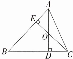 7. 如图,已知AD,CE是$△ABC$的两条高线,$AD= CE,∠CAD= 25^{\circ }$,则$∠OCD= $