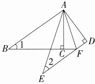 8. 如图,在$△ABC和△ADE$中,$∠ACB= ∠ADE= 90^{\circ },AB= AE,∠1= ∠2$,线段BC的延长线交DE于点F,连接AF.若$S_{△ABF}= 14,AD= 4,CF= \frac {5}{4}$,则线段EF的长度为