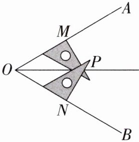 6. 用三角尺可按下面方法画角平分线:在已知的$∠AOB$的两边上,分别取$OM= ON$,再分别过点M,N作OA,OB的垂线,交点为P,画射线OP,则OP平分$∠AOB$.作法中用到证明$△OMP与△ONP$全等的判定方法是(